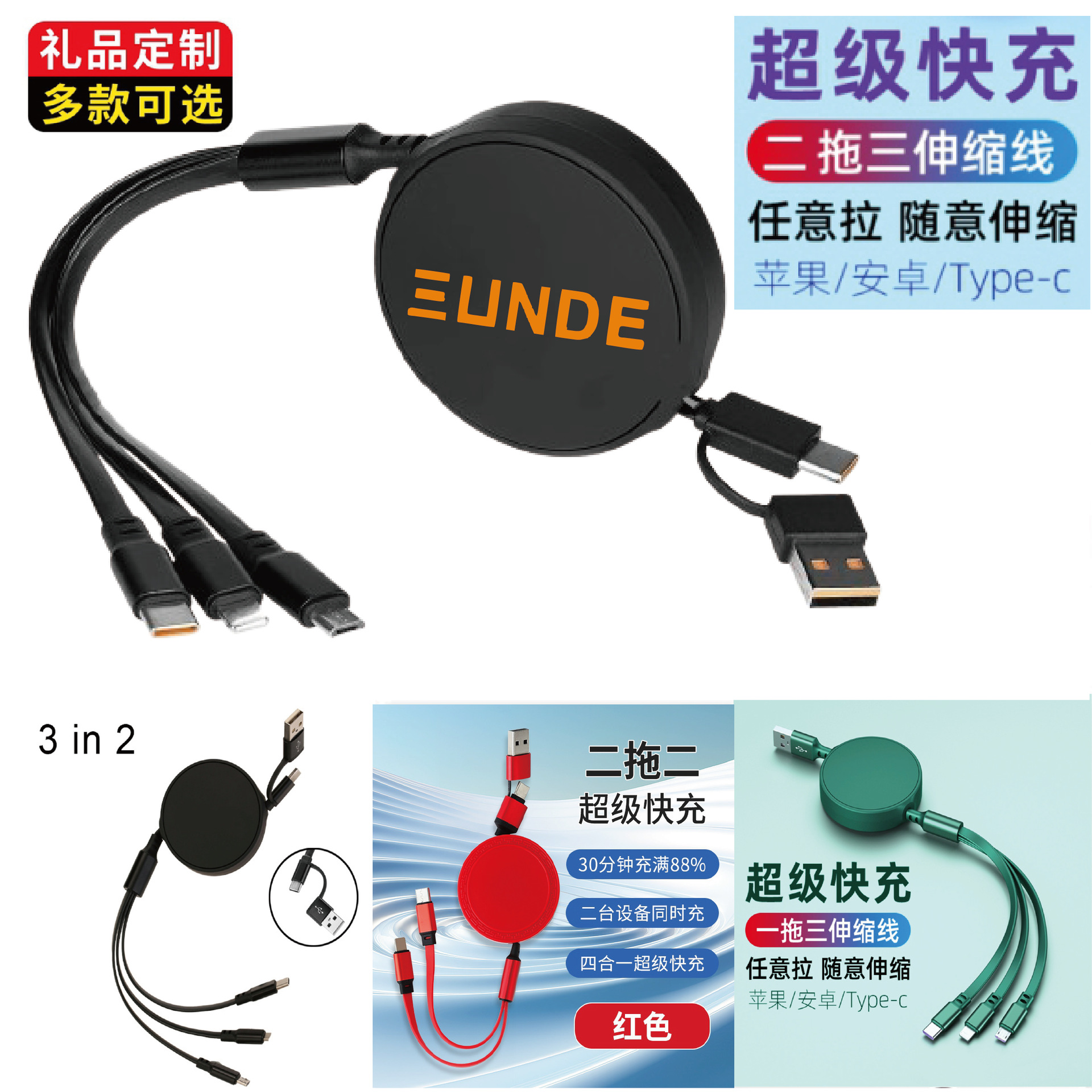Yuntan kabel pengisian daya super cepat, kabel data tiga dalam satu pengisian daya sangat cepat 100W dapat dicetak pola hadiah kecil