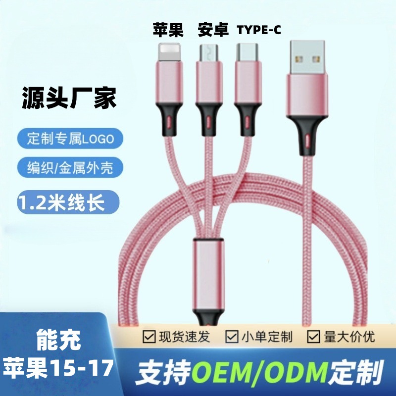 Satu ke-tiga kabel data untuk Apple Android typec tiga pengisian cepat 1.2 m pembuat hadiah rajut nilon