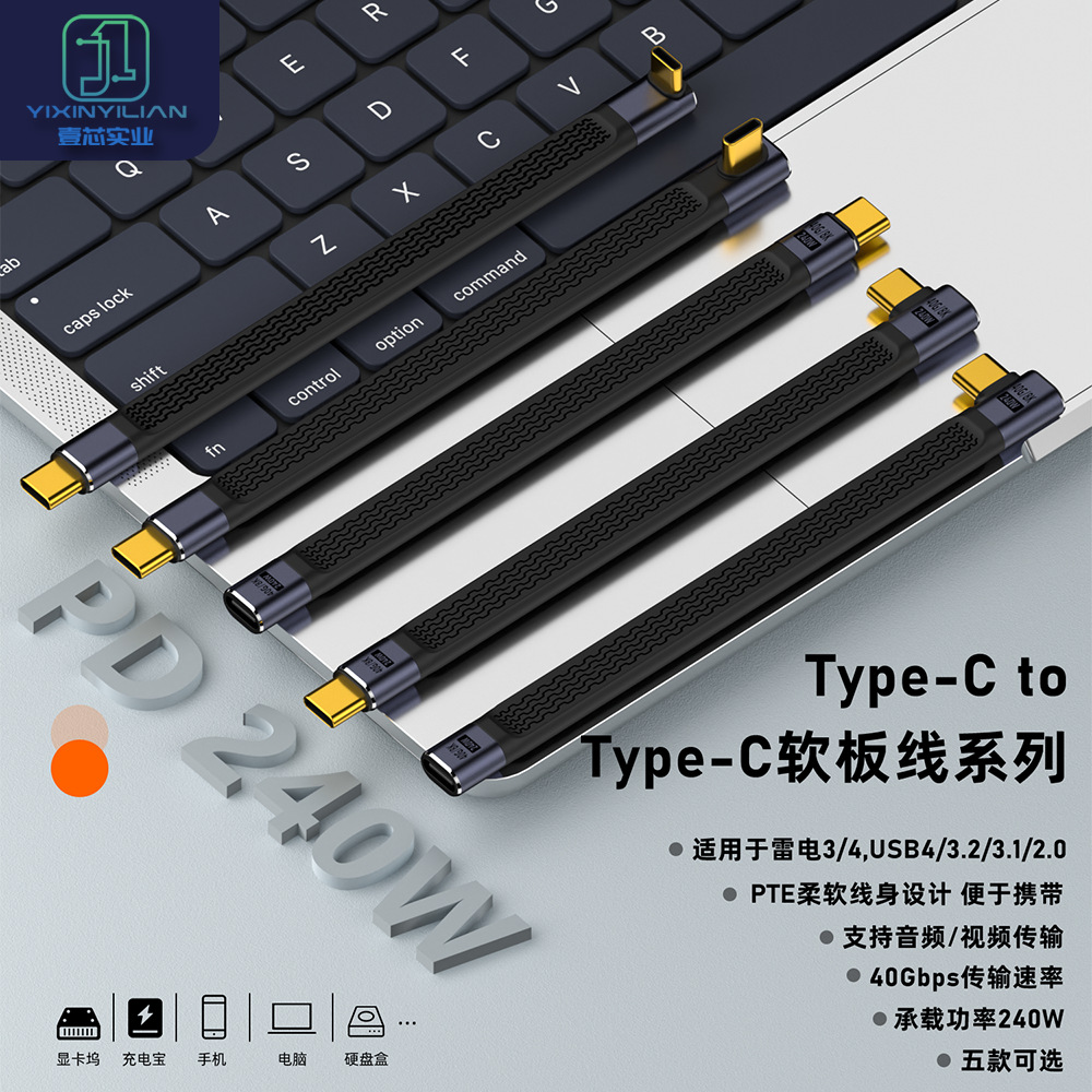 Berlaku untuk Petir 4 kabel data silikon FPC adaptor jantan tipe-c mendukung 40Gbps garis pendek fungsi penuh 240W