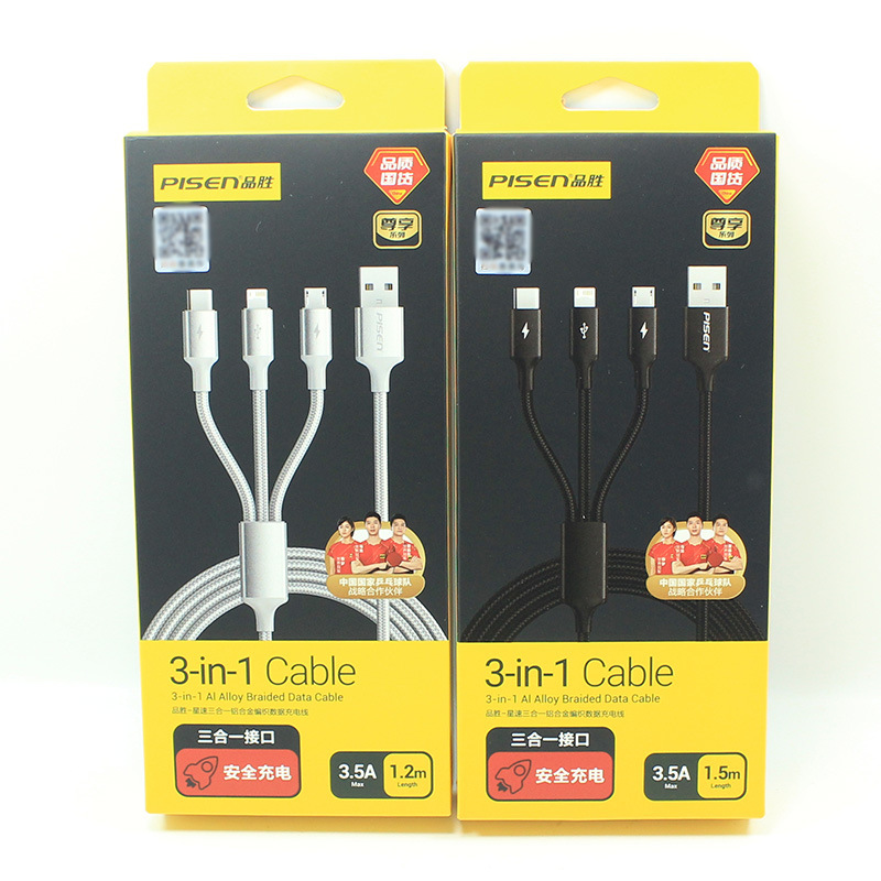 Pinsheng kabel data pengisian cepat tiga-dalam-satu cocok untuk Apple Huawei kabel pengisi daya satu hingga tiga ponsel Android mobil Universal
