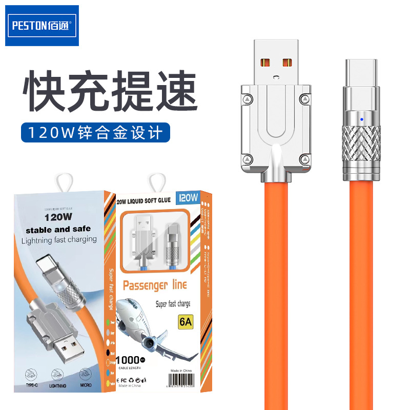 Bai Tong 120W gel silika paduan seng super cepat indikator 6A isi daya tebal transmisi data tipe-c garis grosir