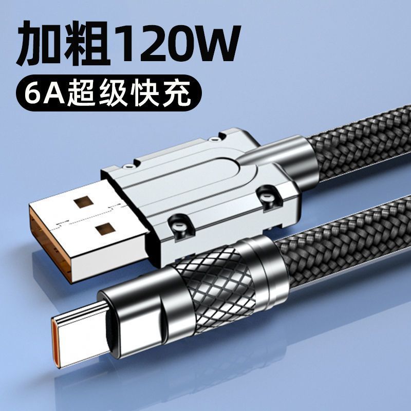 Kabel data siku kepang 120W, kabel Tipe C cocok untuk Xiaomi 14 Red Rice Black Shark 5pro flash pengisian ponsel 6A kabel pengisian daya