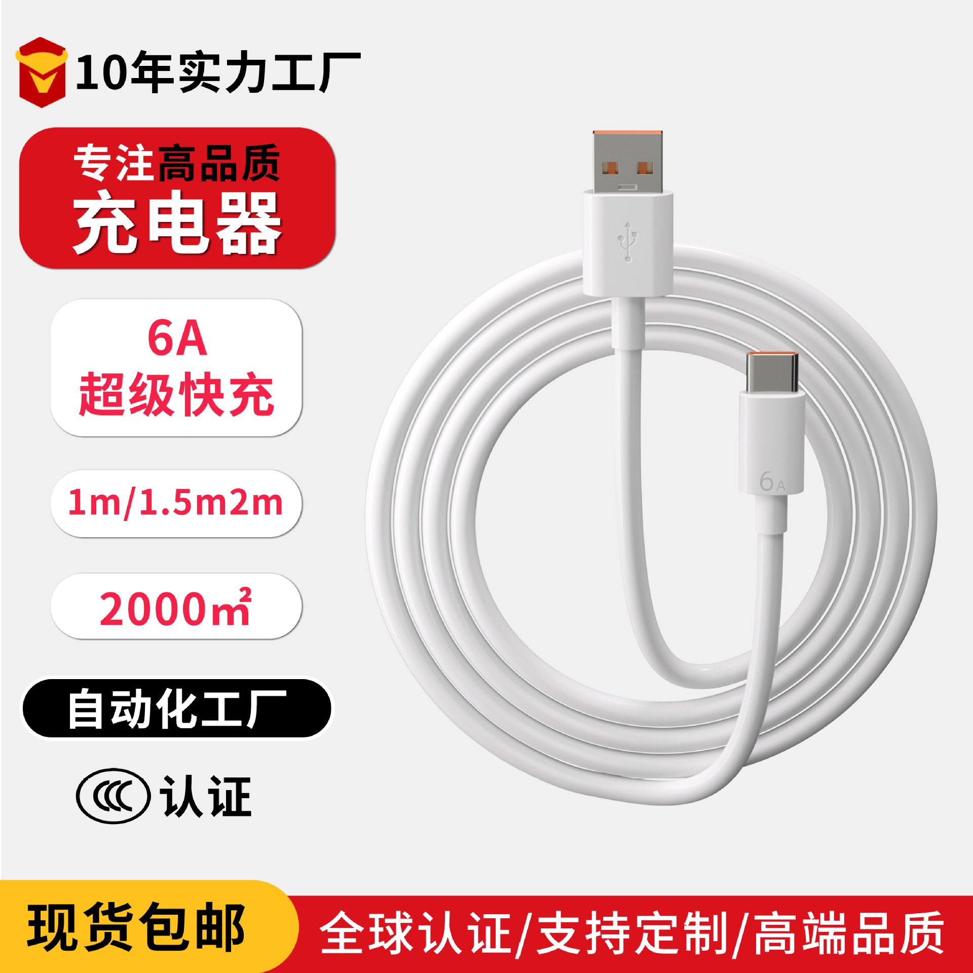 Kabel data tipe-c kepala tunggal 6A kabel pengisian daya super cepat untuk ponsel universal Huawei Android Xiaomi oppo