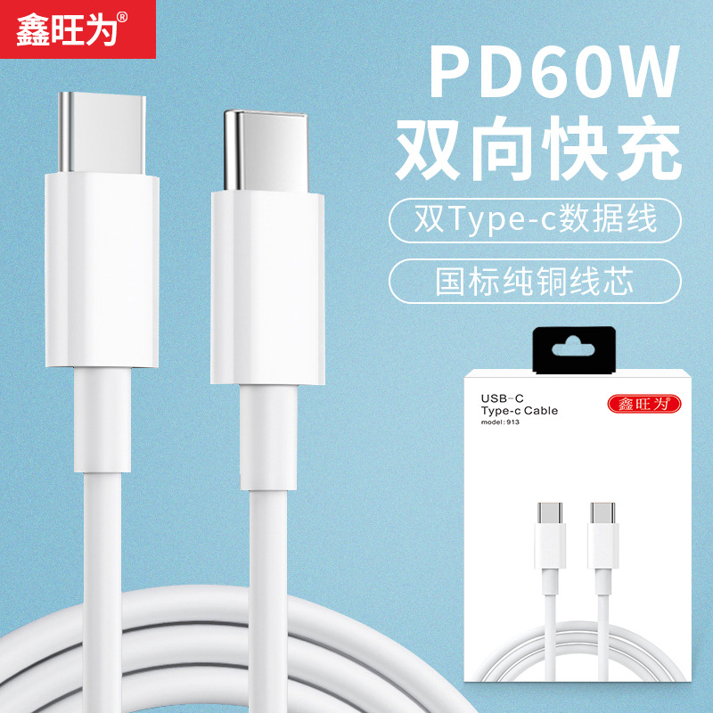 Kabel data PD 60/100W, kabel data pengisian daya Cepat tipe-c ke tipe-c berkepala ganda