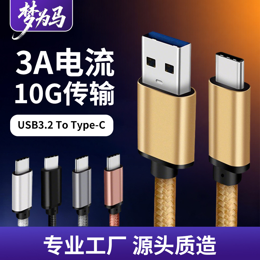 Kabel data USB3.0 Android, 60W 3A tipe-c pengisian cepat QC3.0 komputer hard disk 5G kabel kepang transmisi