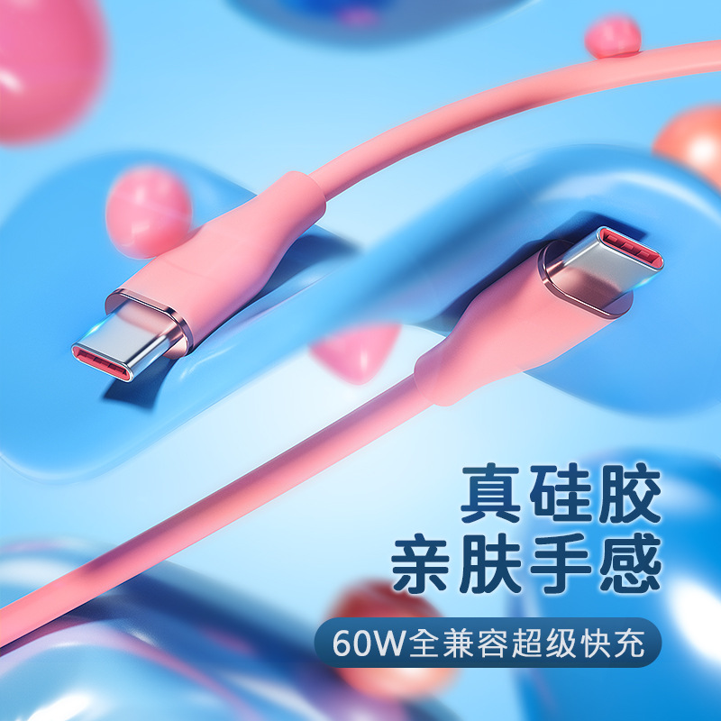 Kabel data silikon pengisian daya cepat, kabel data silikon 60W, pengisian cepat untuk Apple 15 Huawei Xiaomi/laptop