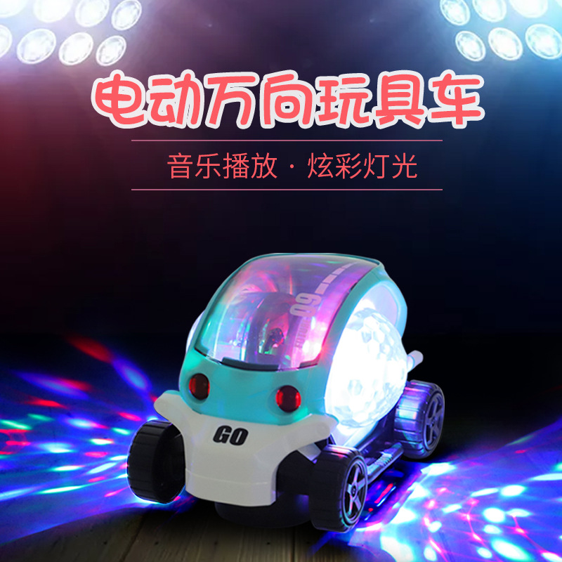 Kios pasar malam mainan lampu warna-warni mobil mainan elektrik Universal berputar musik keren kartun roda tiga mobil listrik