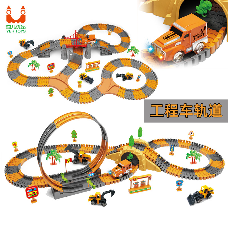 Jalur kendaraan teknik listrik DIY dirakit, mobil mainan anak laki-laki, jalur berputar beragam model gua, mobil mainan anak laki-laki