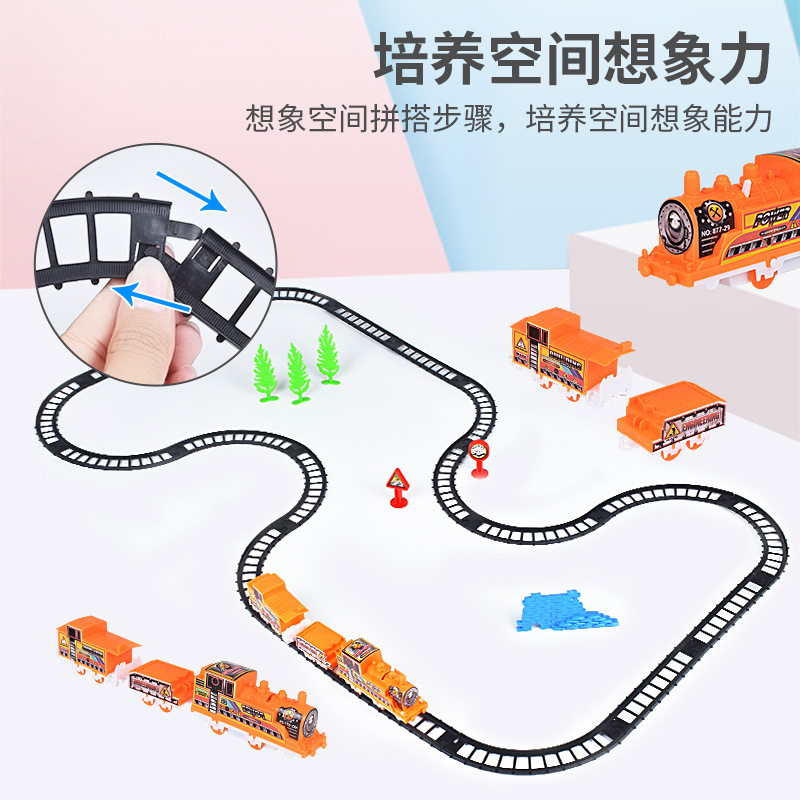 Mobil rel listrik gratis kereta kecil DIY Rakitan anak-anak mobil mainan bayi hadiah ulang tahun anak laki-laki dan perempuan