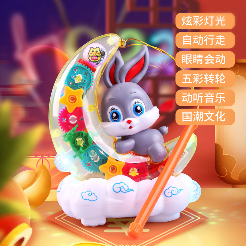 Moon rabbit lampu lentera festival musim gugur, mobil mainan hadiah bayi Universal elektrik gigi transparan musik