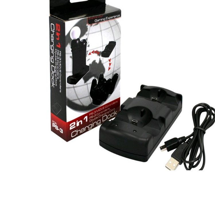 PS3 pengisi daya pegangan nirkabel PS3 memindahkan somato pegangan USB pengisi daya jok ganda dua dalam satu dengan kabel pengisian