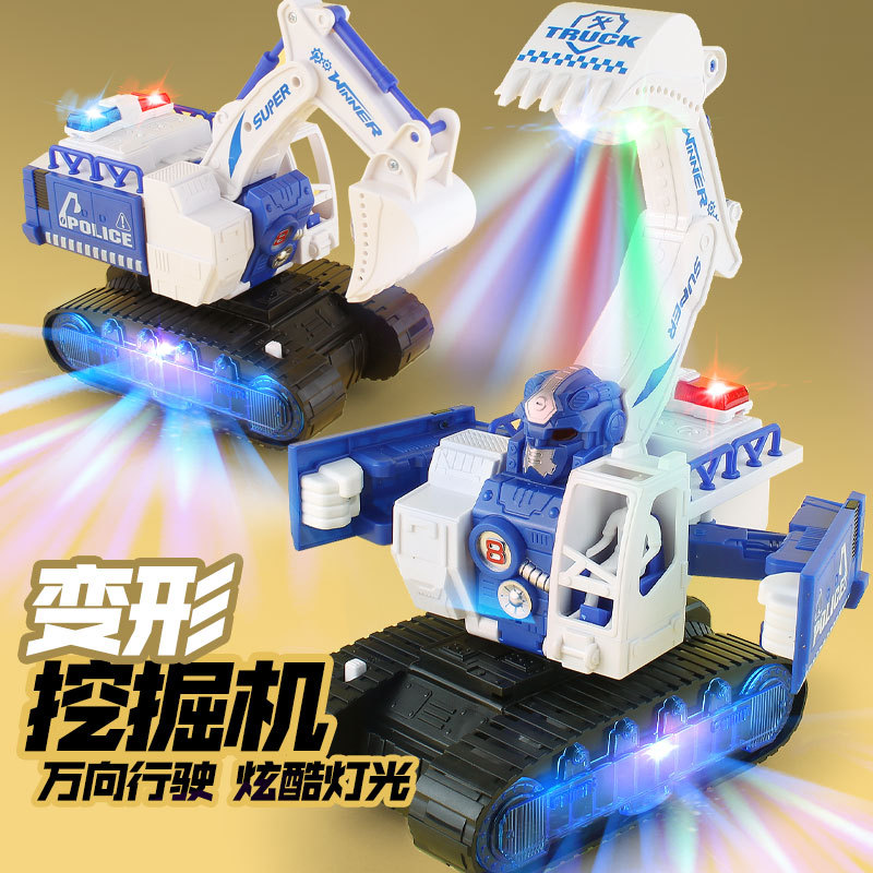 Mainan mobil ekskavator, lampu tembak bayi dengan musik elektrik, model kendaraan ekskavator, mainan mobil deformasi