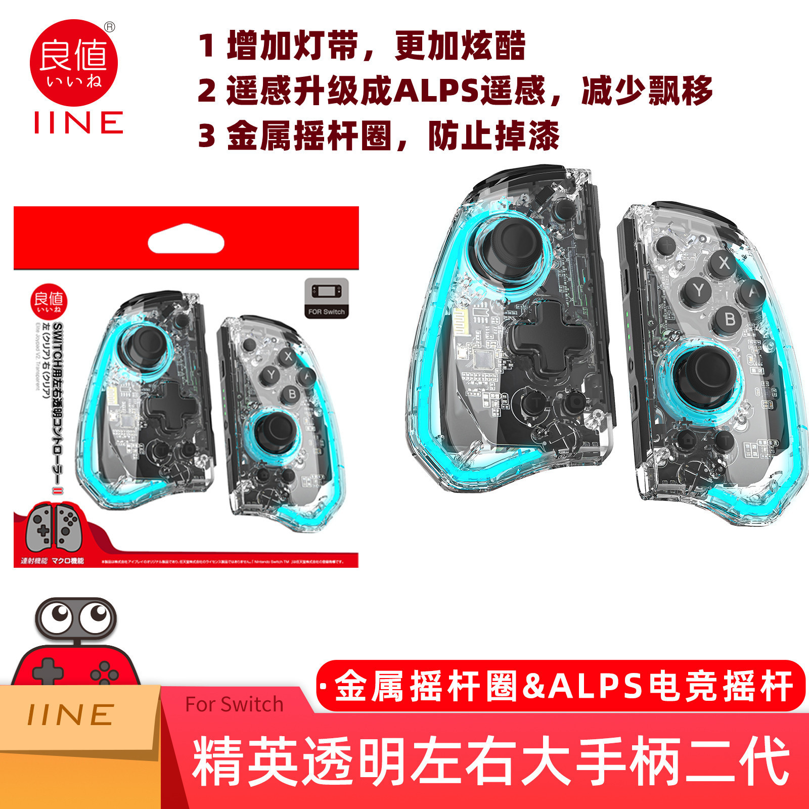 Switch Wireless Joy-Con Handle Bluetooth Sensib Tubuh RGB Lampu Sorot Enam Axis Gyro Mendukung Pemrograman Makro