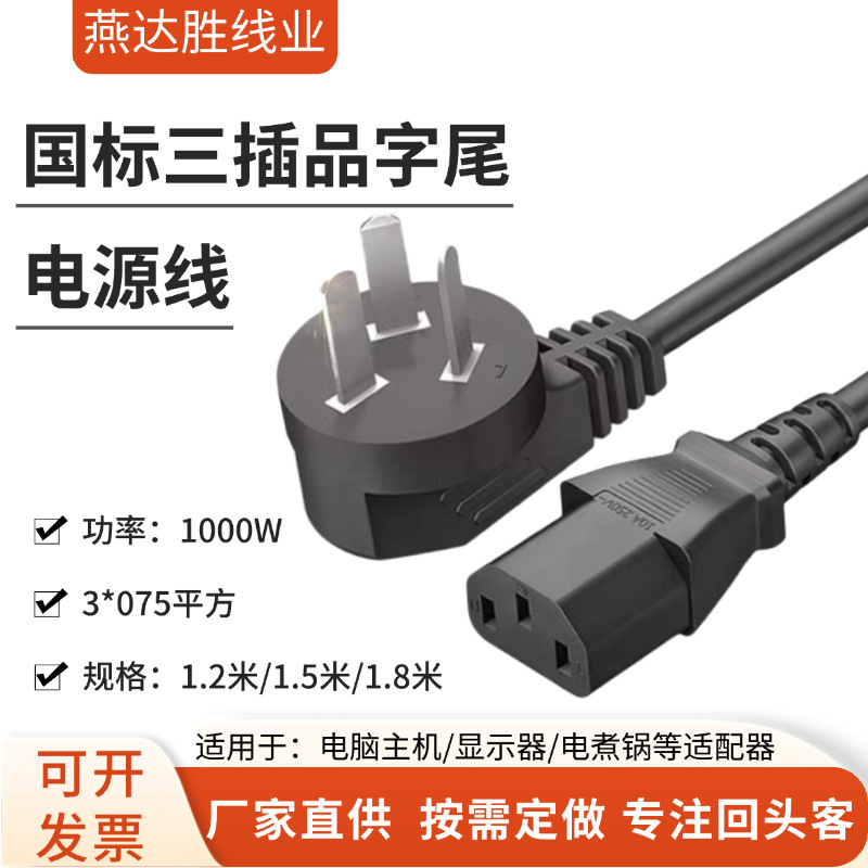 Kabel Daya Ekor Tiga Sisipan Standar Nasional Monitor Komputer Tiga Lubang Printer Penanak Nasi dengan Kabel Sisipan