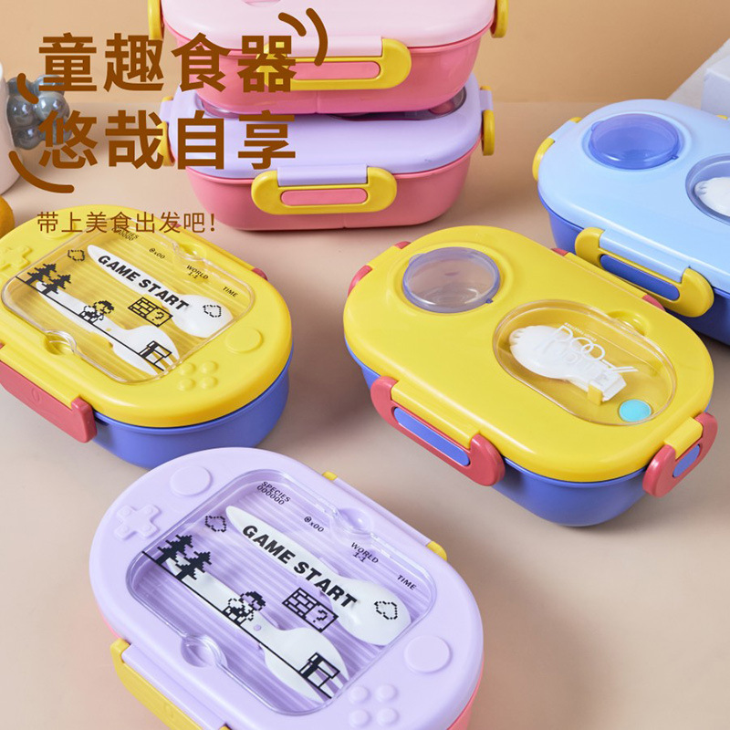 Kotak Makan Siang Mesin Permainan Kartun Kotak Makan Siang Stainless Steel Segel Menyenangkan Portabel Kotak Bento Plastik dengan Kotak Saus