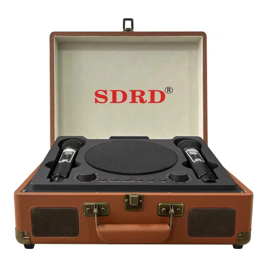 SD2109 speaker Bluetooth portabel, kotak kayu portabel mikrofon ganda nirkabel karaoke ponsel TV hiburan mesin semua dalam satu