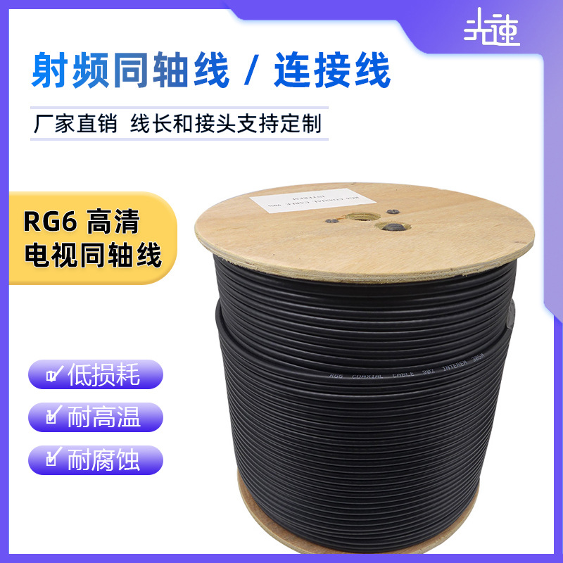 RG6-5 75 Euro Berbusa Tembaga Berbungkus Coaxial Kotak Set Top Rumah Tangga Kabel Sinyal TV Digital Kabel Berlayar Terenkripsi