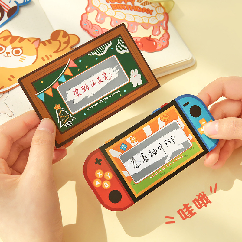 Ouhuang kelinci kreatif kartu gores berbentuk khusus DIY kartu hadiah pujian guru buatan rumah musik goresan DIY