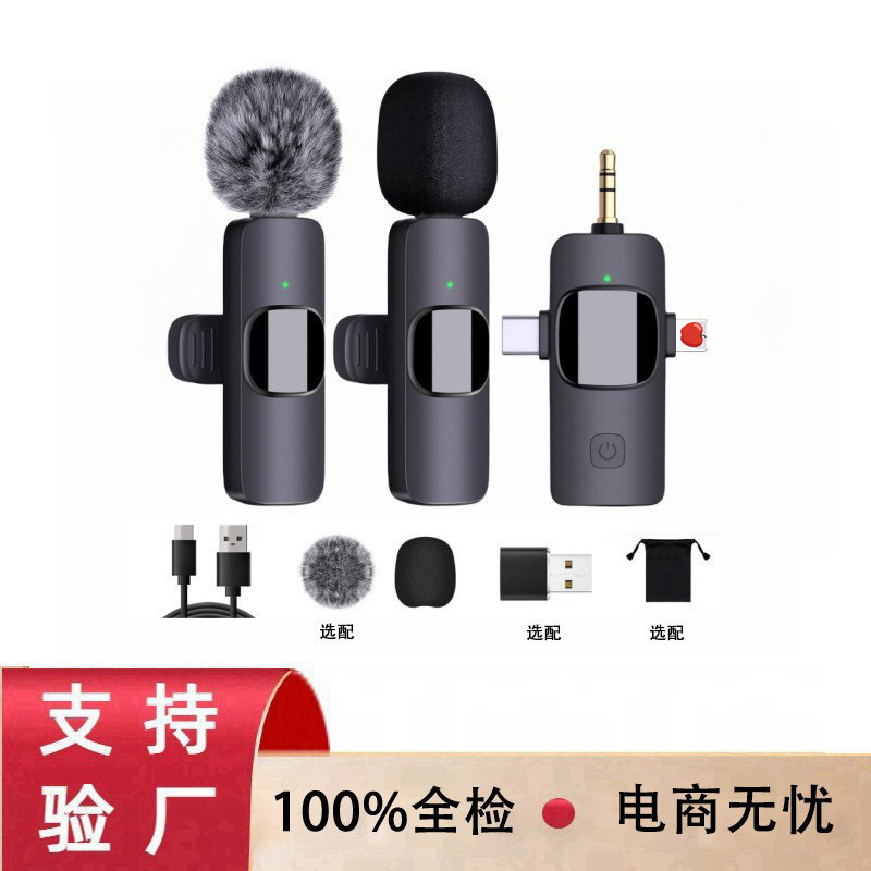 Mikrofon lavalier nirkabel K15 mikrofon lintas batas populer tiga-dalam-satu untuk siaran langsung seluler, pengambilan video kamera luar ruangan