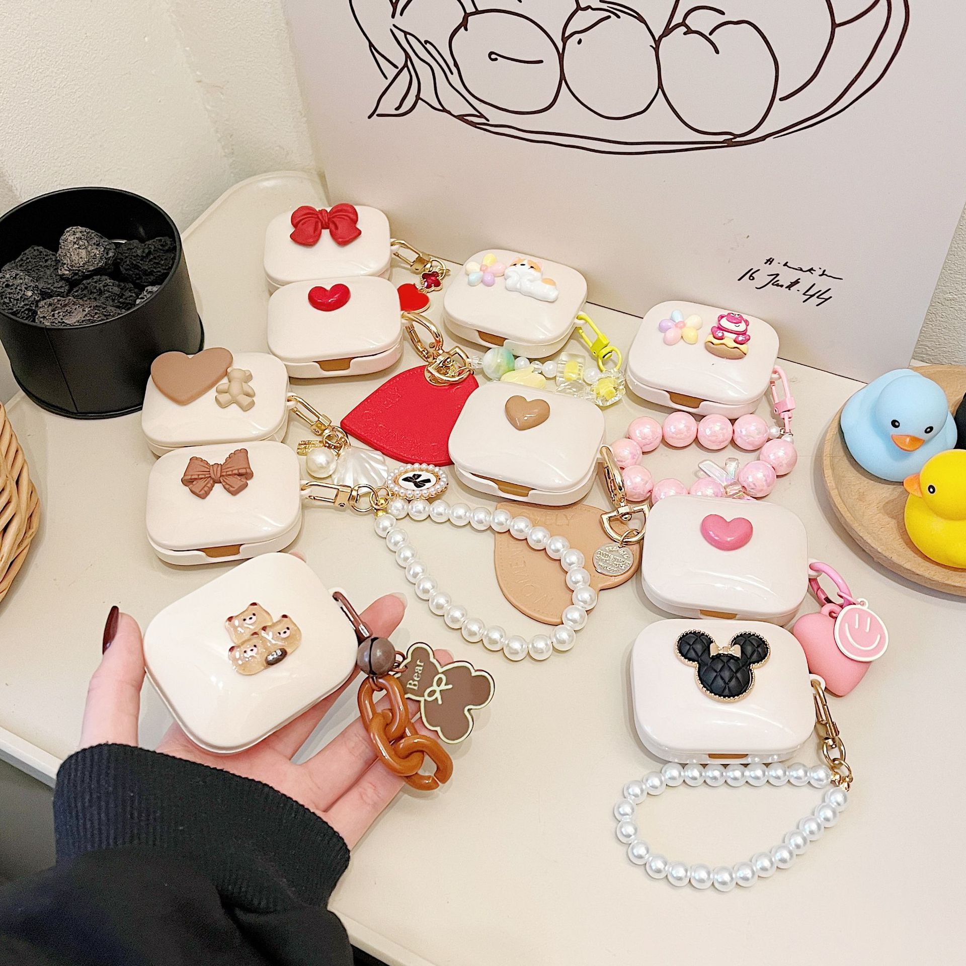 Cocok untuk Red Mi Buds5 headset Bluetooth penutup pelindung kartun warna solid cangkang lunak rantai gantung lucu tiga dimensi kotak cinta DIY