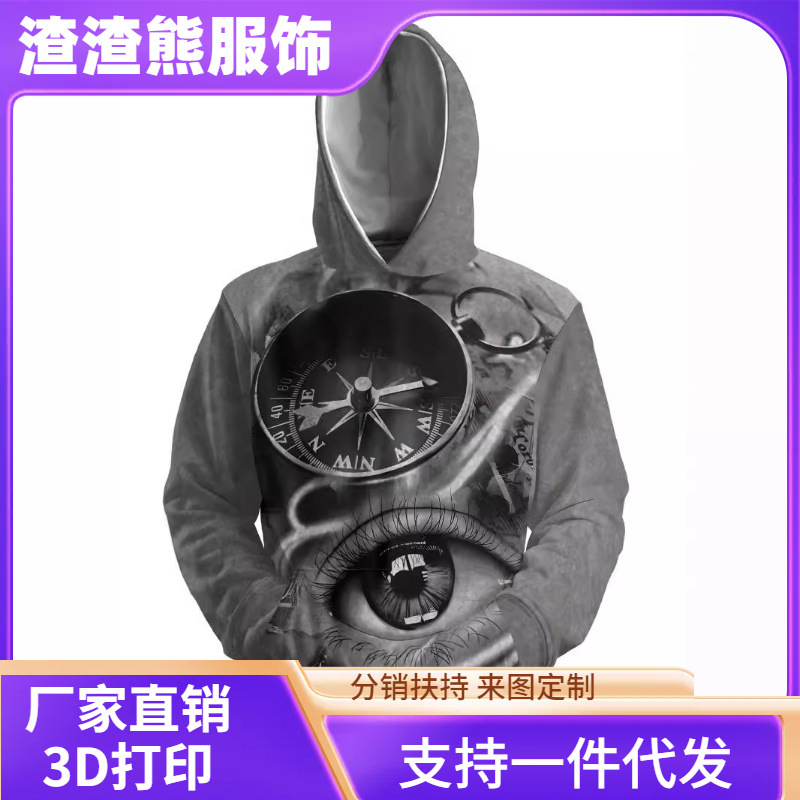 Temu Crossborder Hot Sale Musim Semi dan Musim Gugur Model Baru 3D Jam Digital dengan Motif Mata Sweater Bertopi Kasual Modis Pria