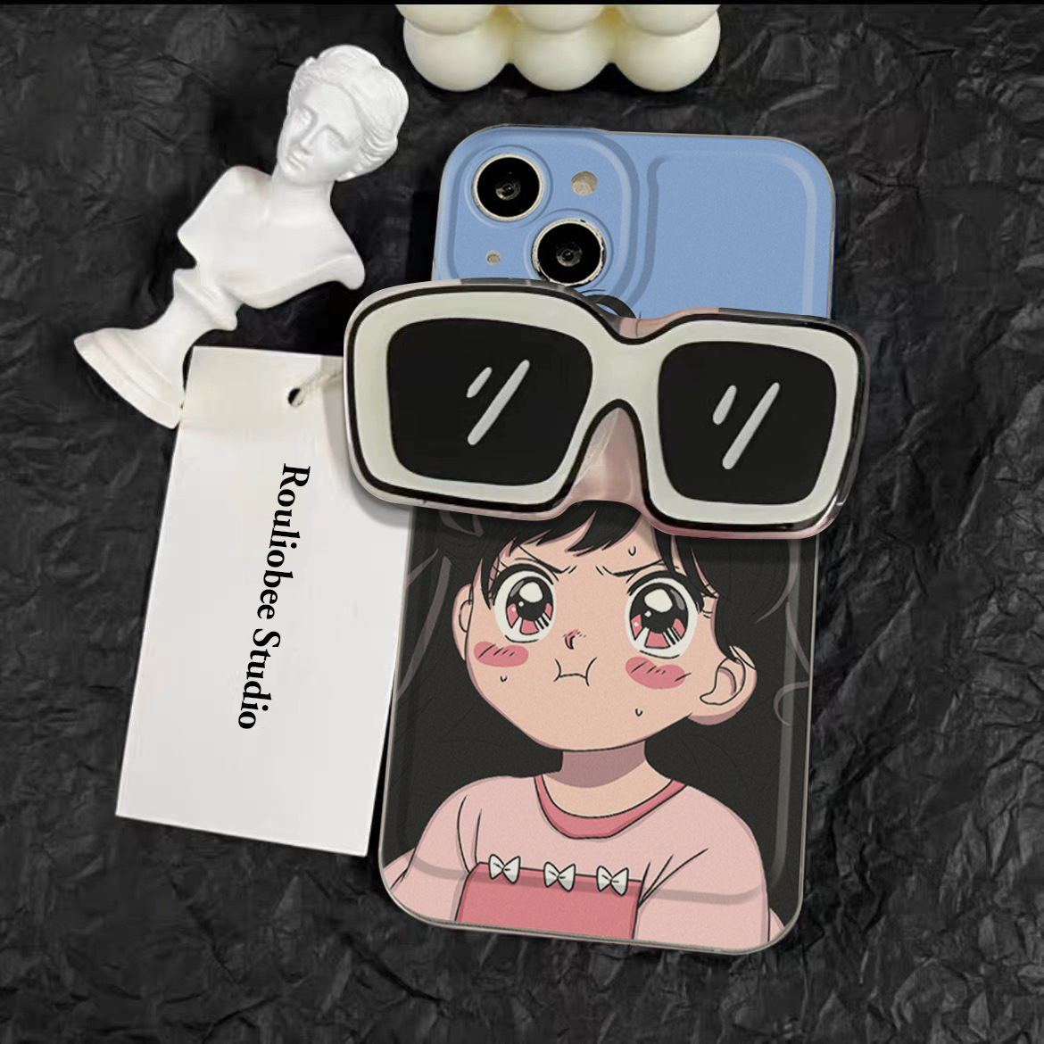 Casing ponsel perempuan lucu untuk Apple 14promax iPhone13 kartun 12 Anime 11 braket kacamata xr transparan