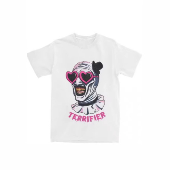 TerrifierAr Kaus Kacamata Hati Badut Kaus Fashion T-Shirt Lengan Pendek Leher Bulat Hadiah Kreatif Kasual Lengan Pendek