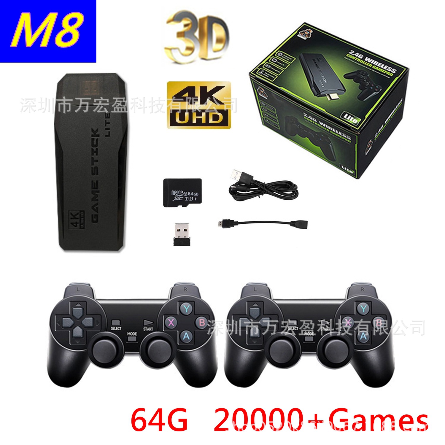Konsol game M8 dua orang jalan bermain pegangan nirkabel 2.4G HDMI TV rumah 4K HD permainan video Game