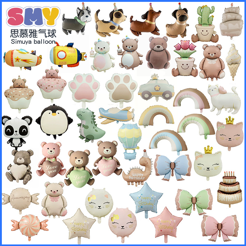 Balon matte Beruang Balon mobil polisi, matte pesawat Dekorasi Ulang Tahun pelangi grosir