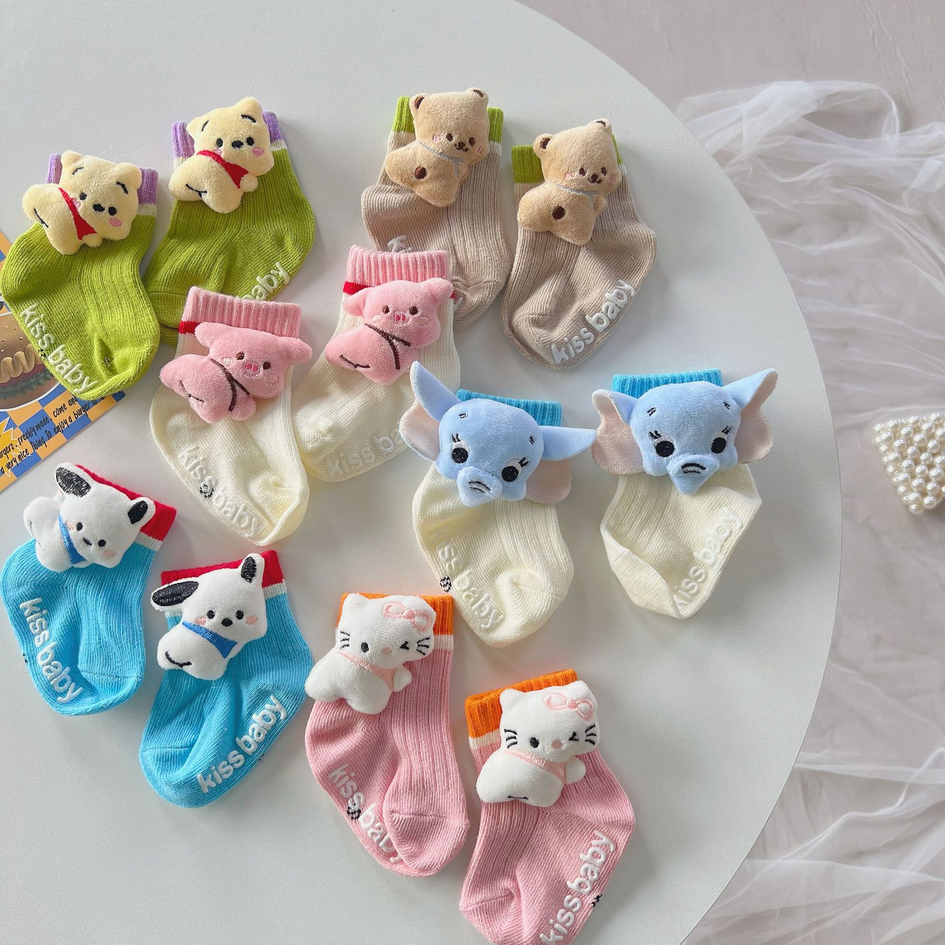 24 baru kaus kaki anak kreatif kartun Model ins kaus kaki setengah betis mengeluarkan kaus kaki katun boneka kartun tiga dimensi kaus kaki anak-anak grosir