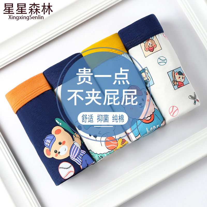 Pakaian dalam anak laki-laki Star forest, pakaian dalam katun murni boxer musim panas tembus udara, celana dalam pendek anak laki-laki dan besar