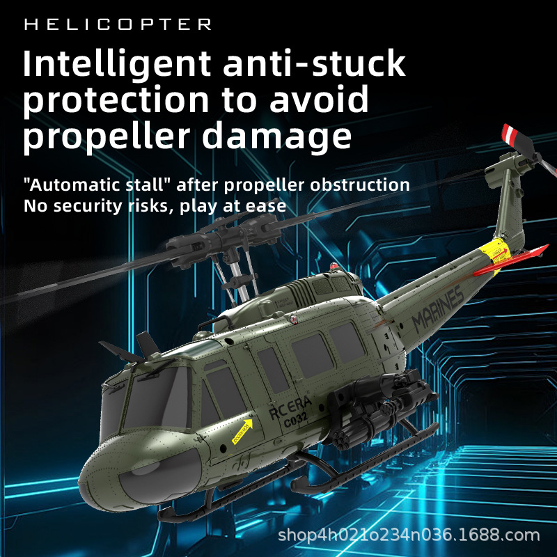 Lintas batas C032 remote control helikopter UH-1 Huey simulasi enam arah tanpa sayap helikopter model pesawat listrik