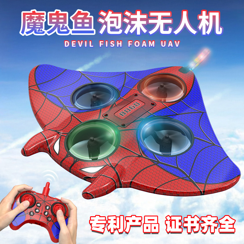 Lintas Batas Pesawat Remote Control Baru Spider Superman Ikan Setan Tahan Busa Stunt Berwarna-warni Empat sumbu Lampu Drone