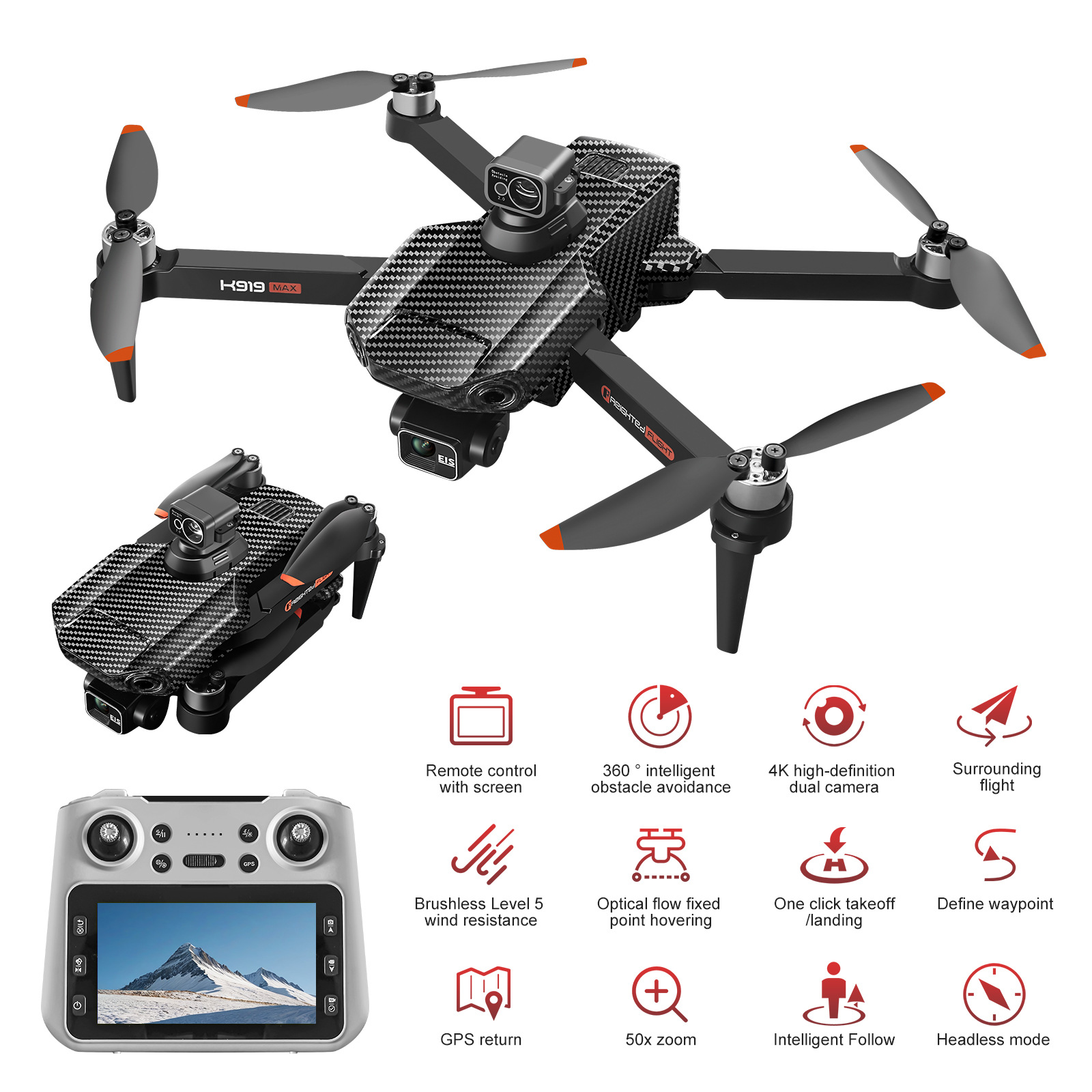 K919MAX Tiga Sumbu Anti-goyang PTZ Dilipat 4K HD Profesional Kamera Udara Drone dengan Kontrol Layar