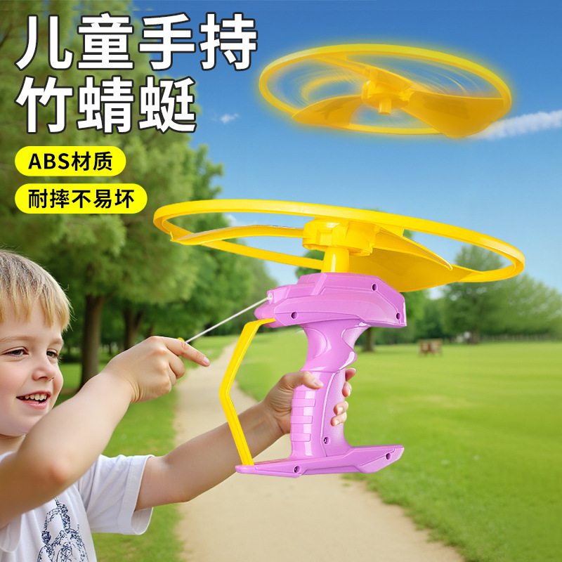 Benang tarik bercahaya besar piring terbang mainan luar ruangan anak-anak capung bambu bercahaya mainan kios lantai peri