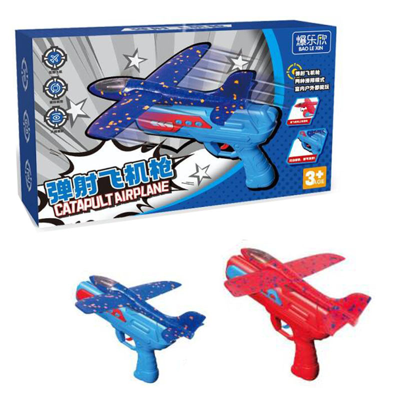 Anak Melontarkan Pesawat Pistol Dalam Ruangan Mainan Luar Ruangan Melontarkan Busa Pesawat Anak Laki-laki Tuang Pesawat Taman Mainan