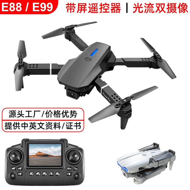 E88 Drone dengan Layar Kontrol Udara Pesawat Terbang Lipat Kamera Ganda Aliran Cahaya E99 Remote Control Pesawat Mainan Perdagangan Luar Negeri