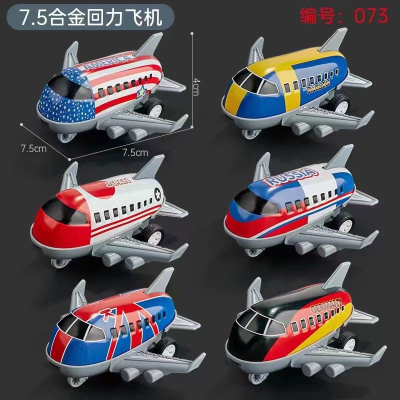 Mainan pesawat terbang logam campuran 7.5cm, mainan pesawat terbang kecil logam paduan, mainan tarik mundur pesawat lintas batas