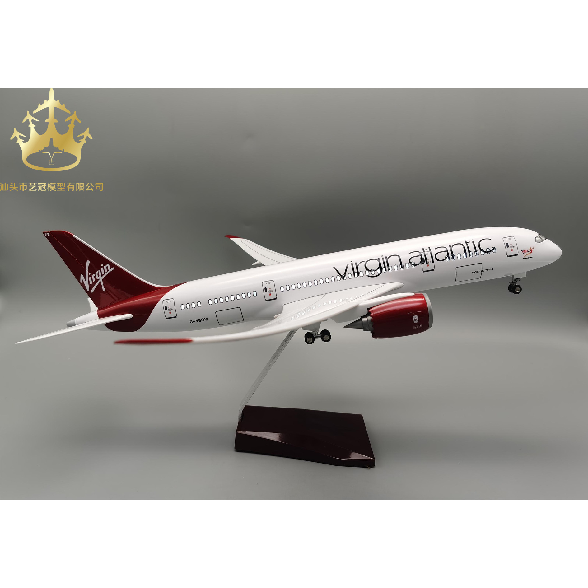 B787 Model Pesawat Virgin Aviation dengan Lampu dengan Roda Simulasi Ornamen Model Udara Statis