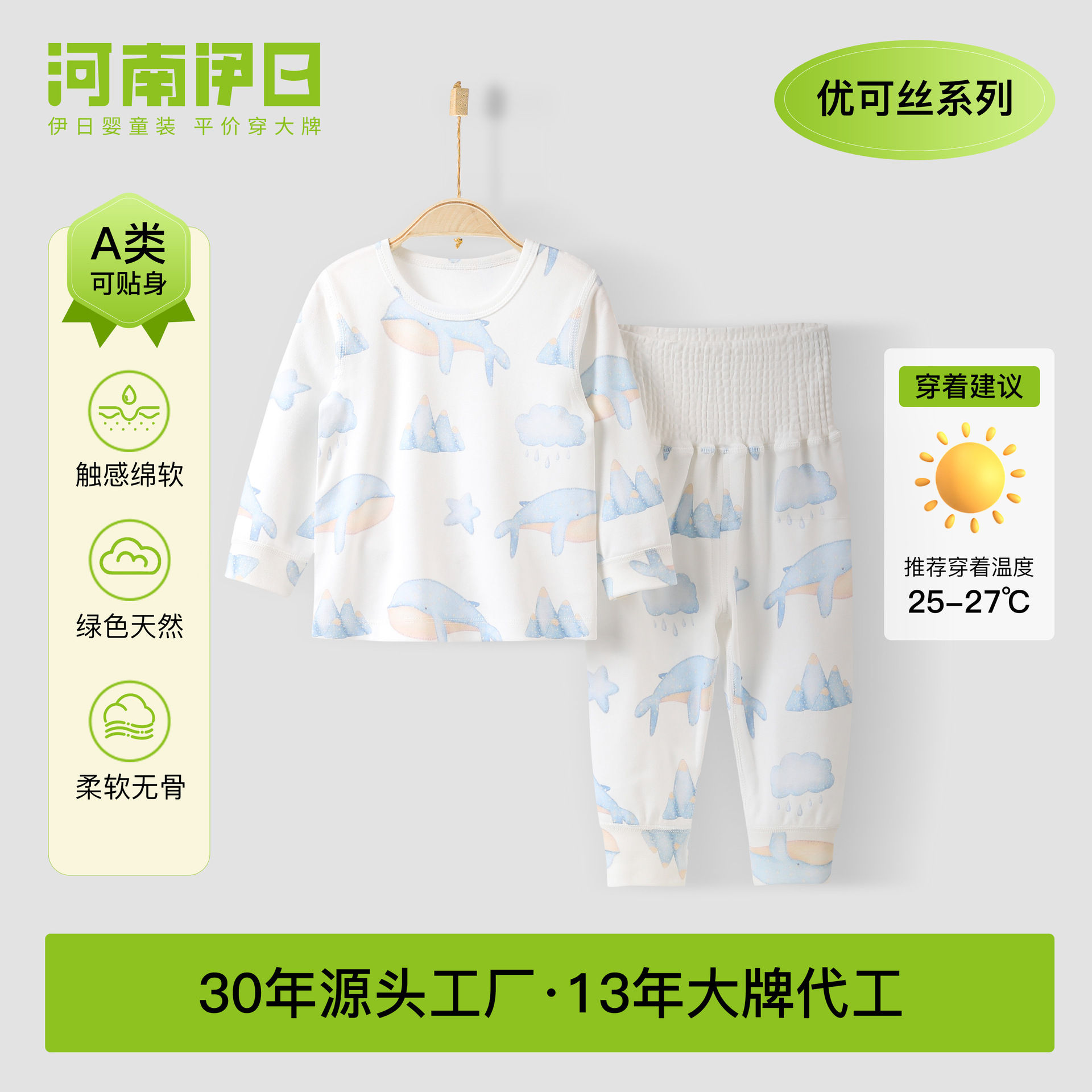 Pakaian bayi Musim Semi dan Gugur Anyang, pakaian anak-anak Anda sutra lingkar perut pinggang tinggi dua potong pakaian rumah pelindung perut pinggang tinggi