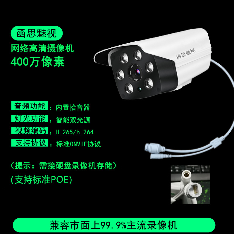 Hai/Kang 6 lampu 4 juta cerdas dual sumber cahaya jaringan audio 4MP pengawasan kamera inframerah 48VPOE kamera