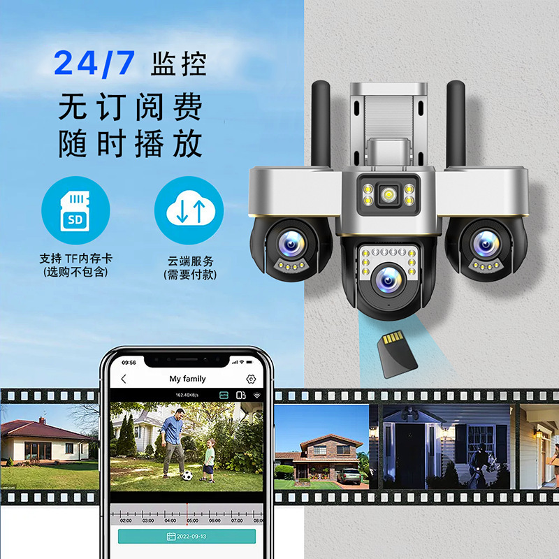 Perdagangan luar negeri lintas batas V380 luar ruangan sumber cahaya ganda mesin terintegrasi 360 derajat tanpa sudut mati kamera pengintai definisi tinggi tiga gambar