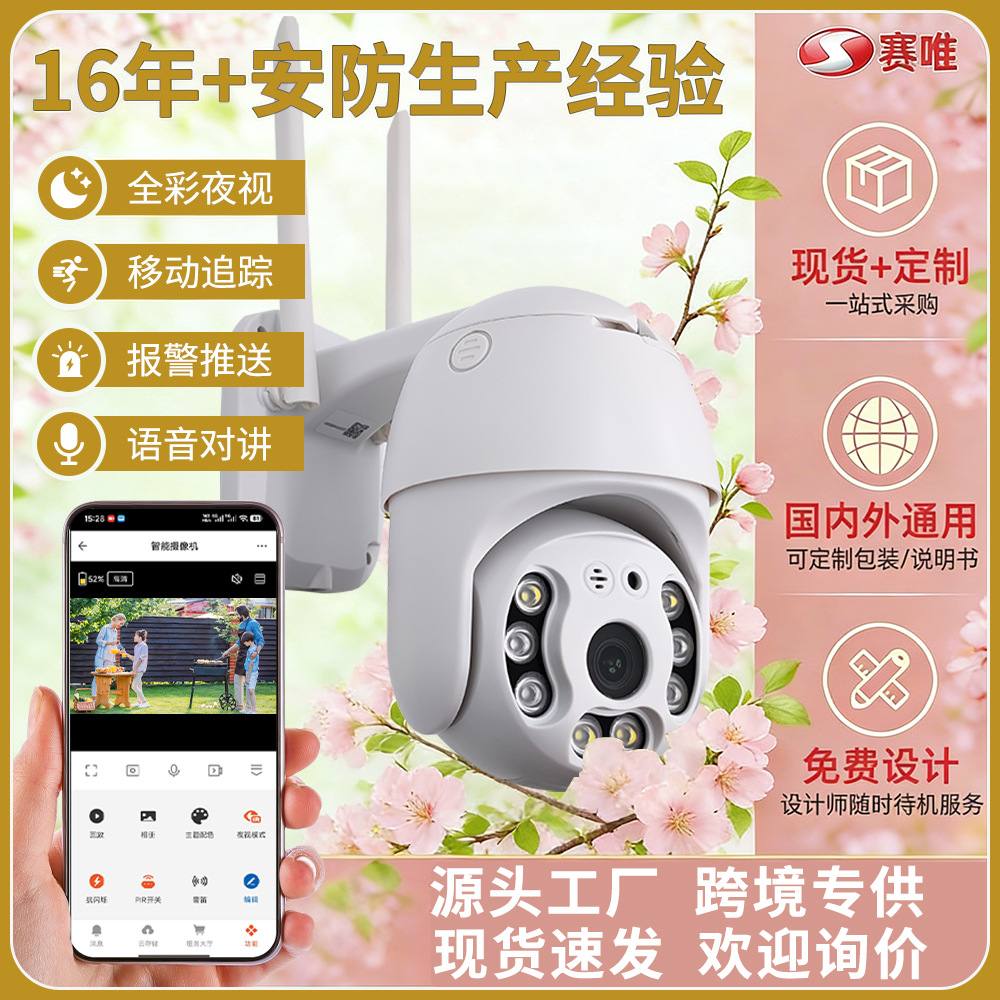 V3802.5-inch 8-bola lampu mesin cerdas keamanan nirkabel pemantauan luar ruangan HD penuh warna penglihatan malam jaringan pemantauan jarak jauh
