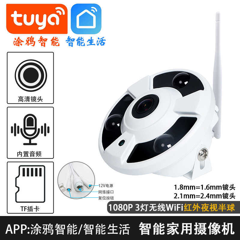 Kamera pengawas Tuya TUYAWIFI5MP 360 derajat kamera fisheye logam penglihatan malam sudut lebar inframerah penglihatan malam
