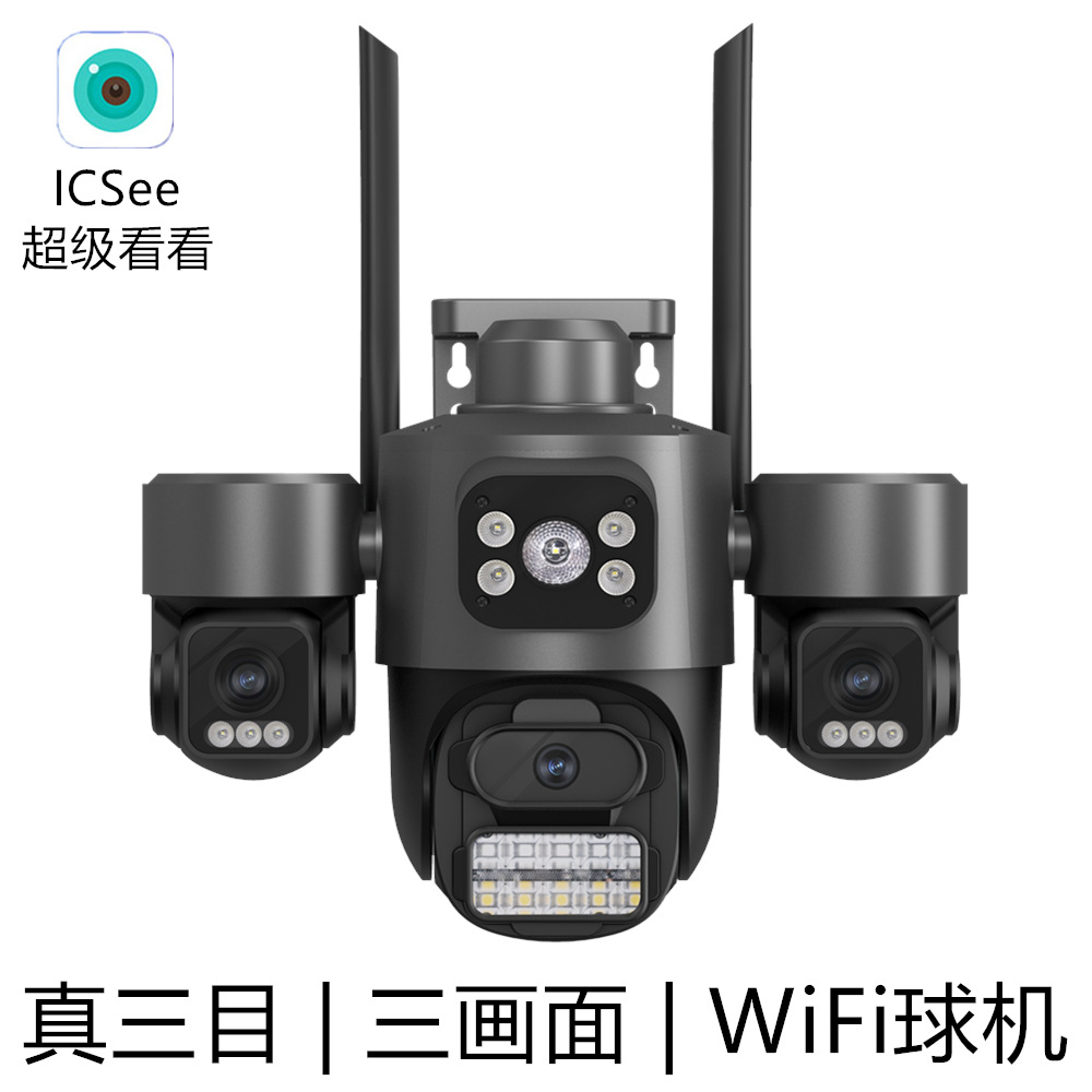 Super csee tiga lensa nyata 3MP WiFi nirkabel tiga bola kamera IP jaringan HD penuh warna