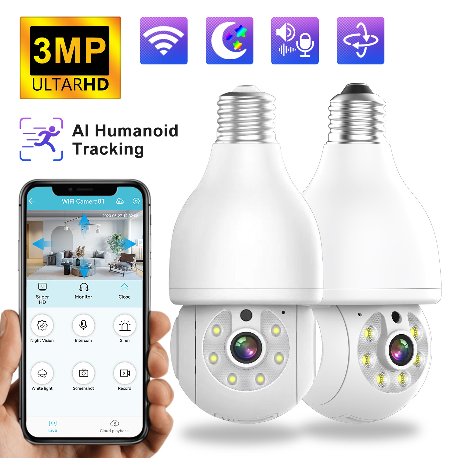 E27 kamera bohlam rumah kamera pengintai 360 derajat, wifi remote pintar HD penglihatan malam pemegang lampu penuh warna