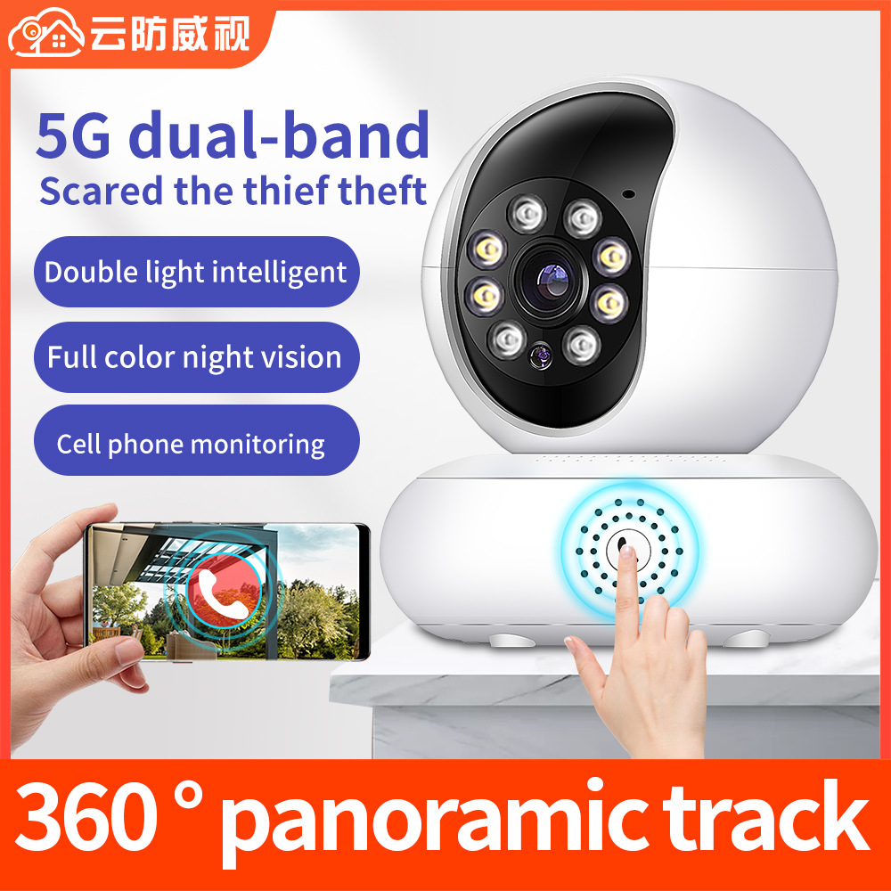 Kamera pengawas dalam ruangan HD warna penuh, kamera nirkabel frekuensi ganda 5G panorama 360 derajat cerdas