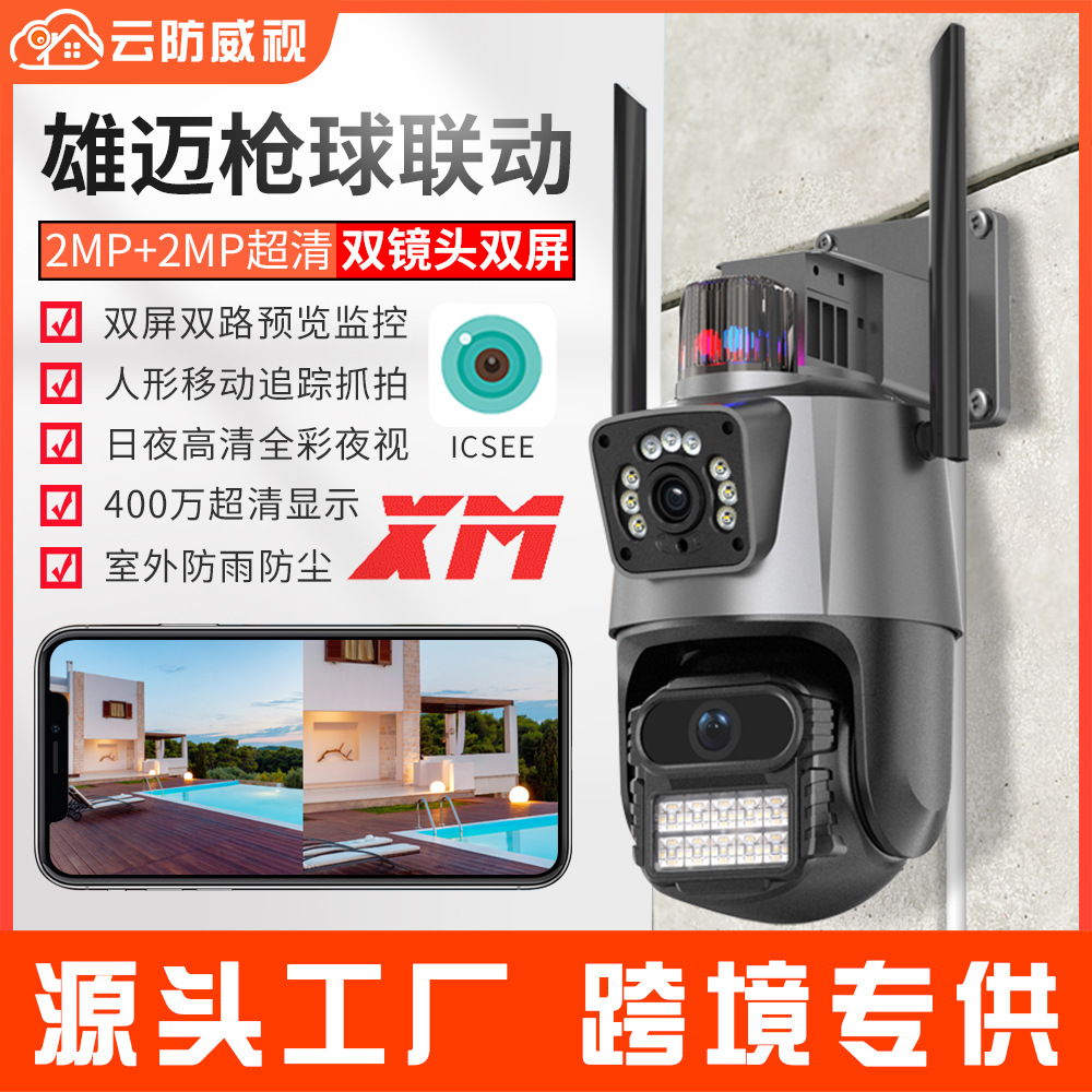 Teropong pistol model pribadi pabrik, kamera pengawas luar ruangan kamera ganda tahan air bola WiFi 4G Xiongmai