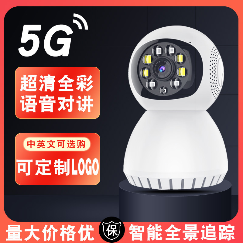 Kamera pengawas dalam ruangan HD warna penuh, kamera nirkabel frekuensi ganda 5G panorama 360 derajat cerdas