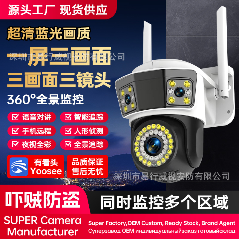 YOOSEE mesin bola tiga lensa dengan kepala yang terlihat secara otomatis melacak tubuh manusia